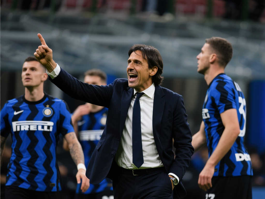 暴雨如注,西蒙尼·因扎吉边线激情指挥,激励国米将士奋战!
